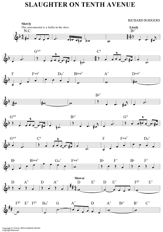 Digital Sheet Music for Slaughter on Tenth Avenue by Richard Rodgers scored for Lead Sheet; id:456962