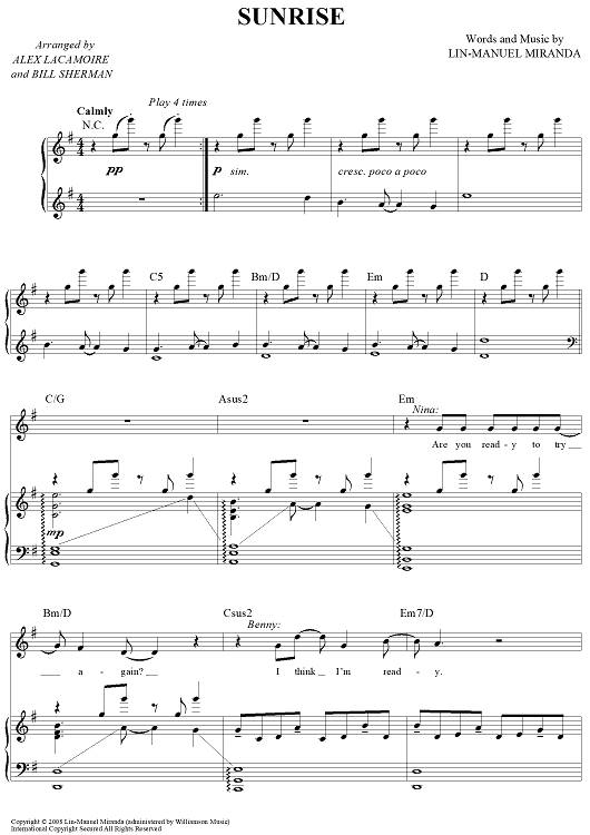 "Sunrise" Sheet Music by Lin-Manuel Miranda