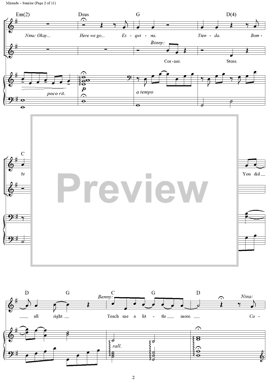 Digital Sheet Music for Sunrise by Lin-Manuel Miranda, Alex Lacamoire, Bill Sherman scored for Piano/Vocal/Chords; id:457760