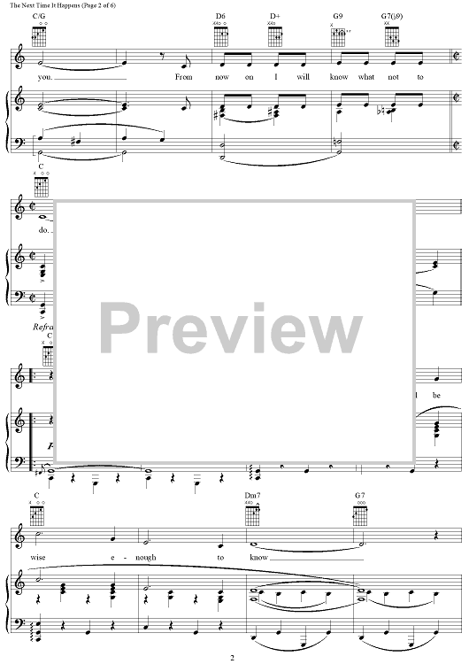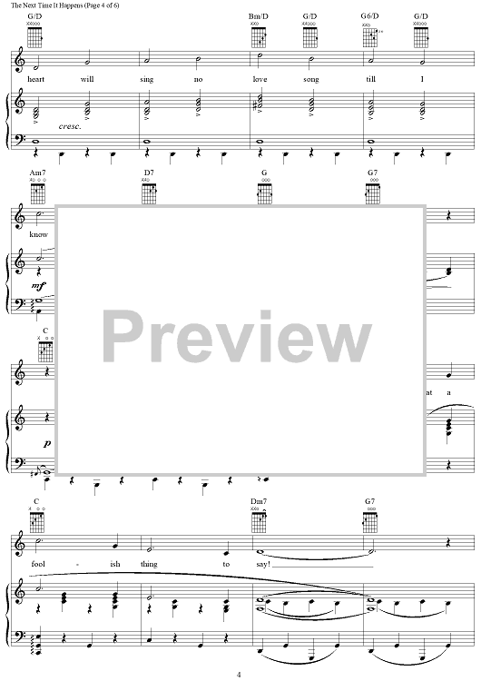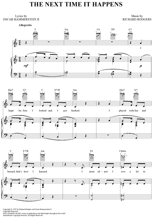 Digital Sheet Music for The Next Time It Happens by Richard Rodgers, Oscar Hammerstein II scored for Piano/Vocal/Chords; id:367082