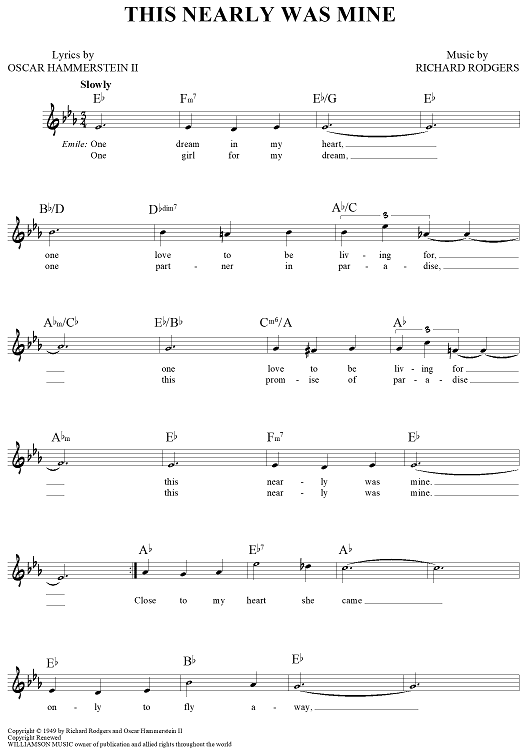 Digital Sheet Music for This Nearly Was Mine by Richard Rodgers, Oscar Hammerstein II scored for Lead Sheet; id:457434
