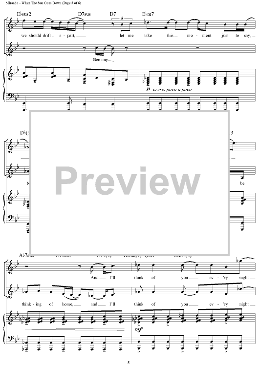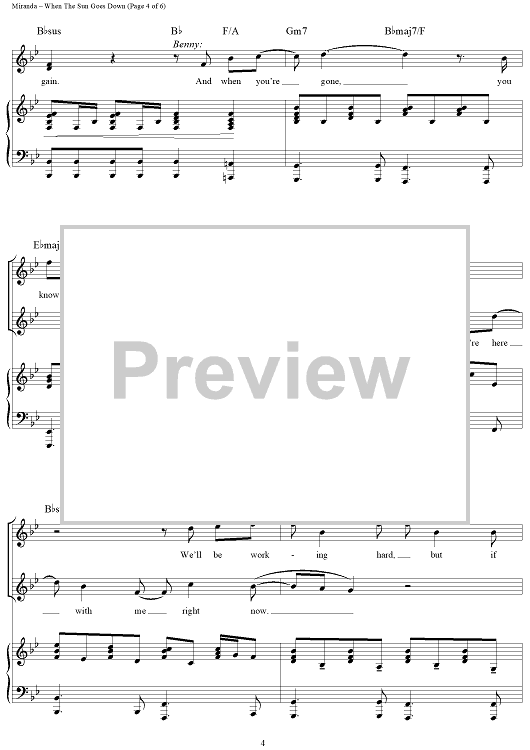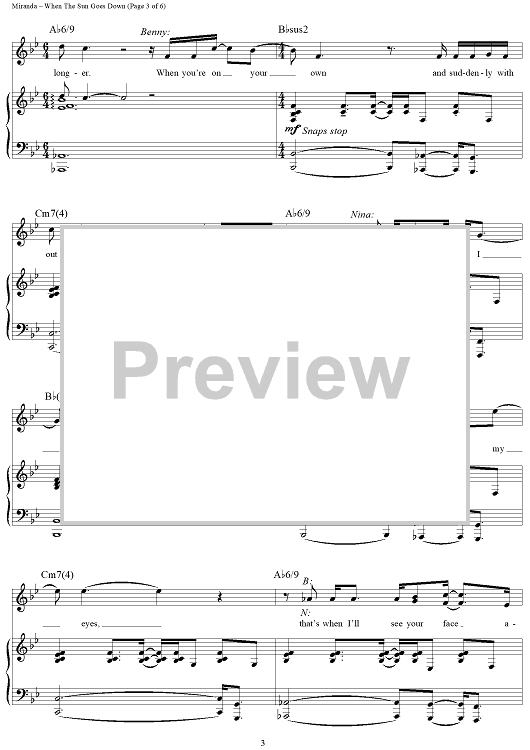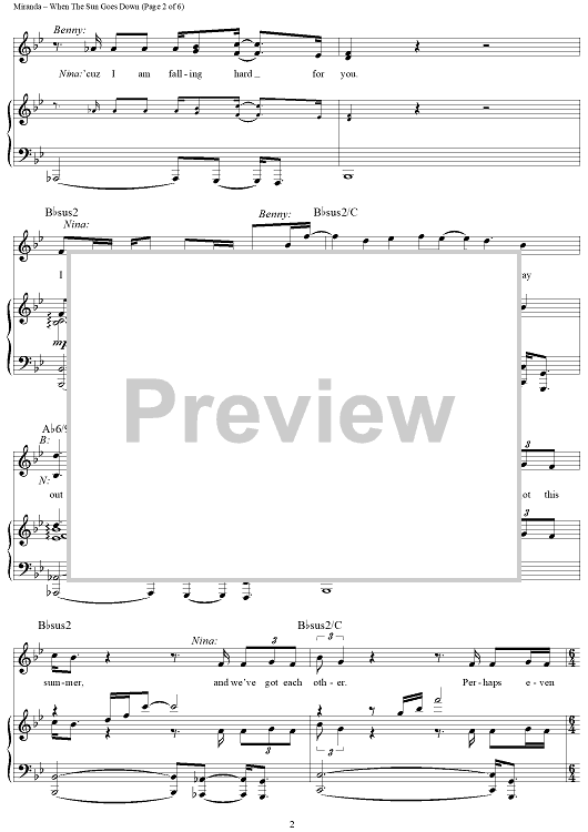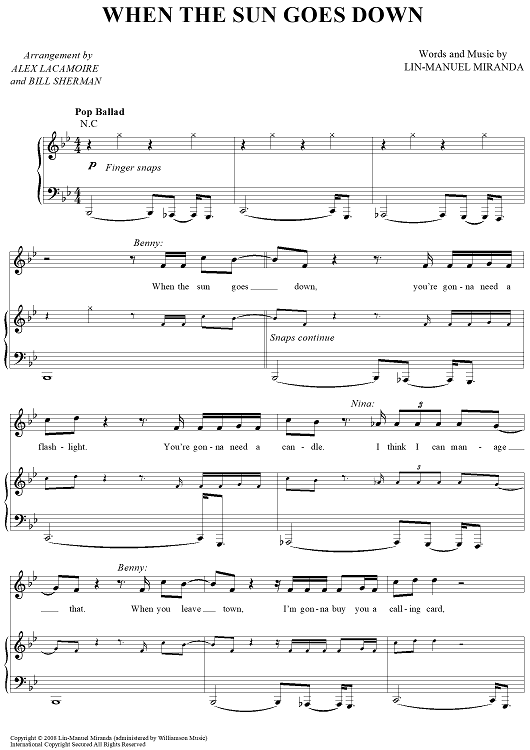 Digital Sheet Music for When The Sun Goes Down by Lin-Manuel Miranda, Alex Lacamoire, Bill Sherman scored for Piano/Vocal/Chords; id:459018