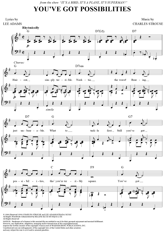 Digital Sheet Music for You've Got Possibilities by Charles Strouse, Lee Adams scored for Piano/Vocal/Chords; id:259414