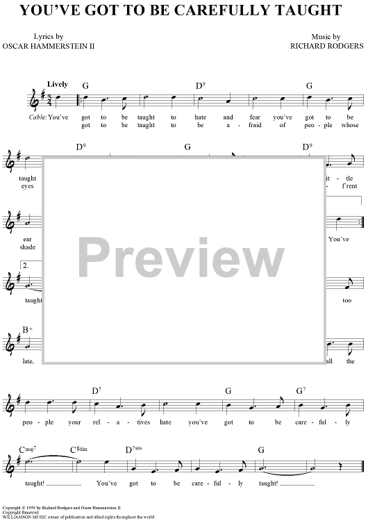 Digital Sheet Music for You've Got To Be Carefully Taught by Richard Rodgers, Oscar Hammerstein II scored for Lead Sheet; id:457436
