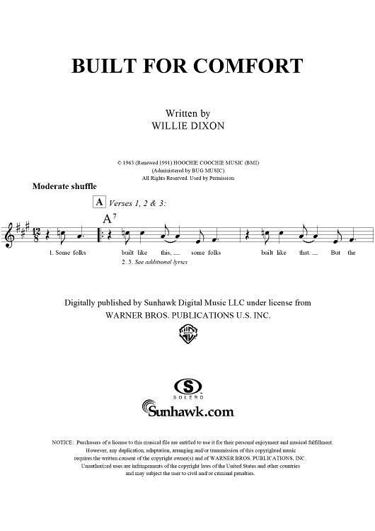 Digital Sheet Music for Built for Comfort by Willie Dixon scored for Lead Sheet; id:290835