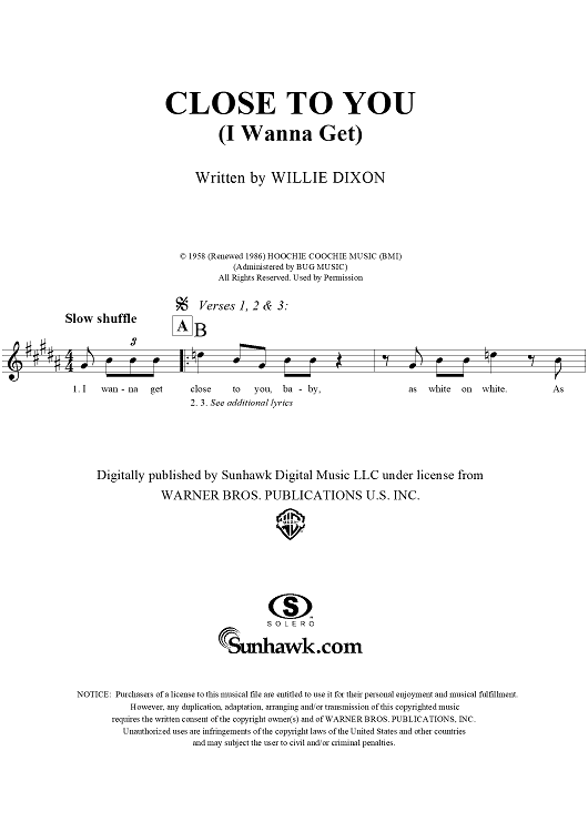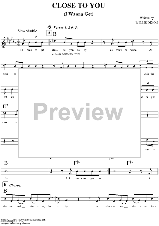 "Close to You (I Wanna Get)" Sheet Music by Willie Dixon