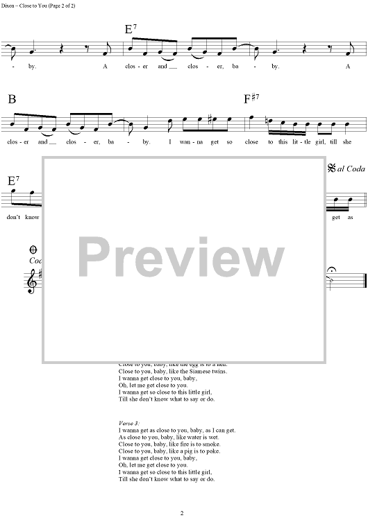 Digital Sheet Music for Close to You (I Wanna Get) by Willie Dixon scored for Lead Sheet; id:290842