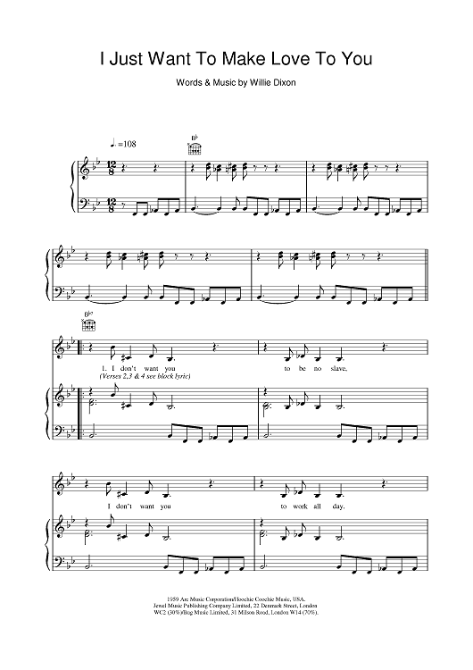 Digital Sheet Music for I Just Wanna Make Love To You by Willie Dixon, Etta James scored for Piano/Vocal/Chords; id:382441