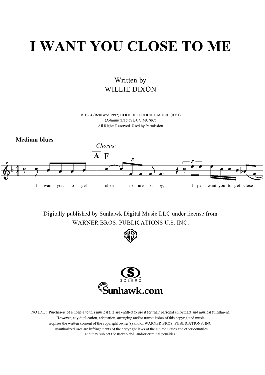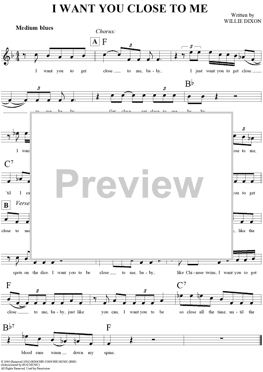 "I Want You Close to Me" Sheet Music by Willie Dixon