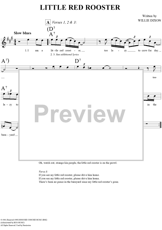"Little Red Rooster" Sheet Music by Willie Dixon