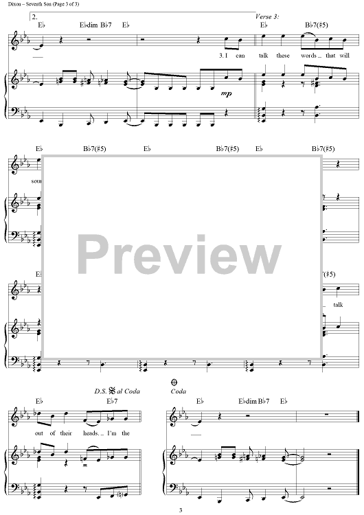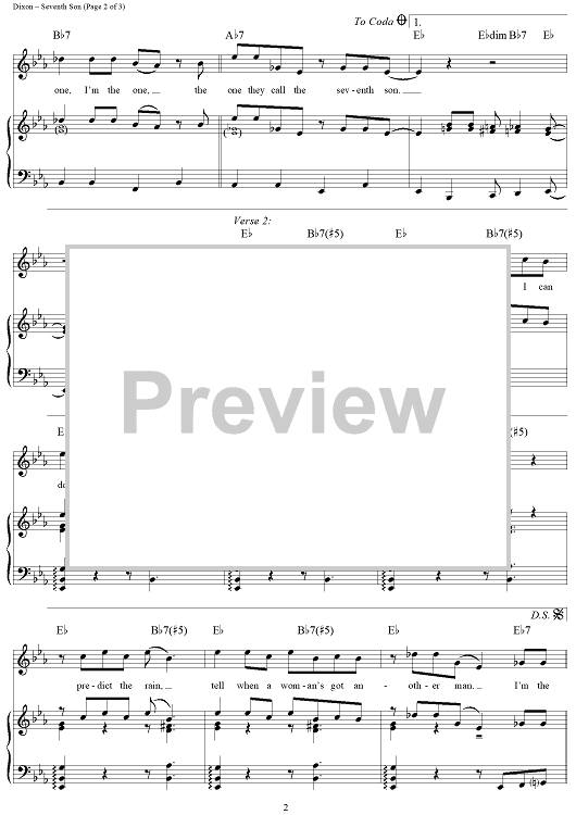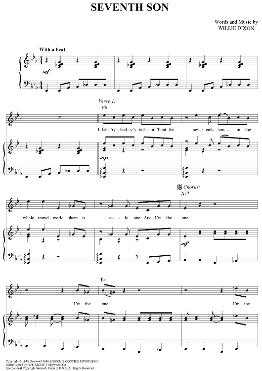 Digital Sheet Music for Seventh Son by Willie Dixon, Johnny Rivers scored for Piano/Vocal/Chords; id:271608