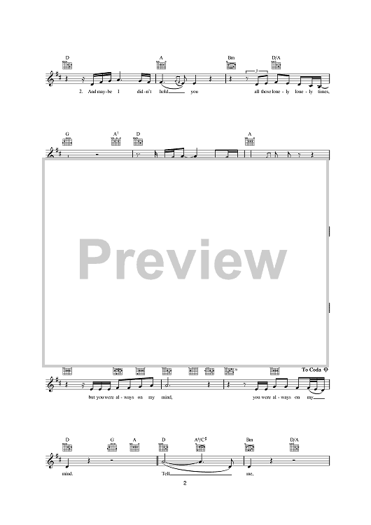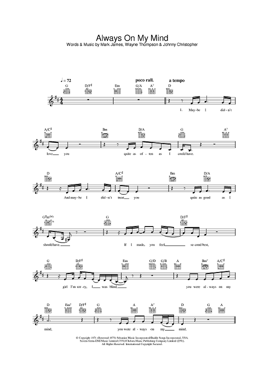 Digital Sheet Music for Always On My Mind by Wayne Thompson, Mark James, Johnny Christopher, Willie Nelson scored for Lead Sheet; id:382811