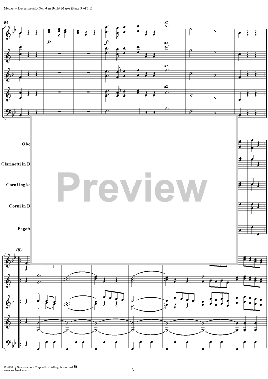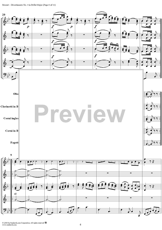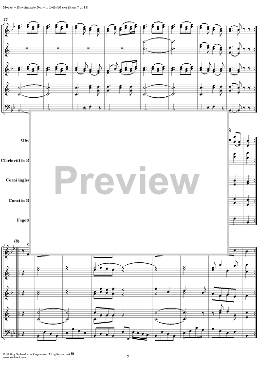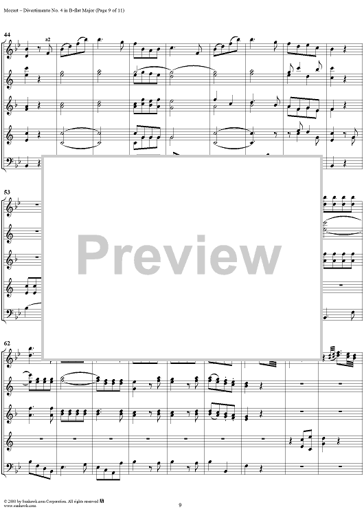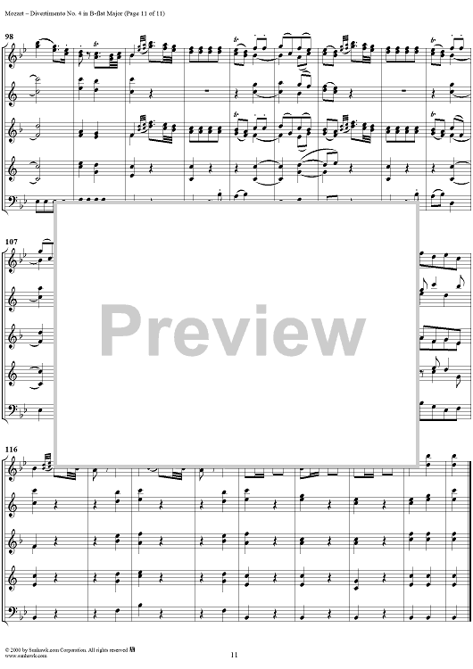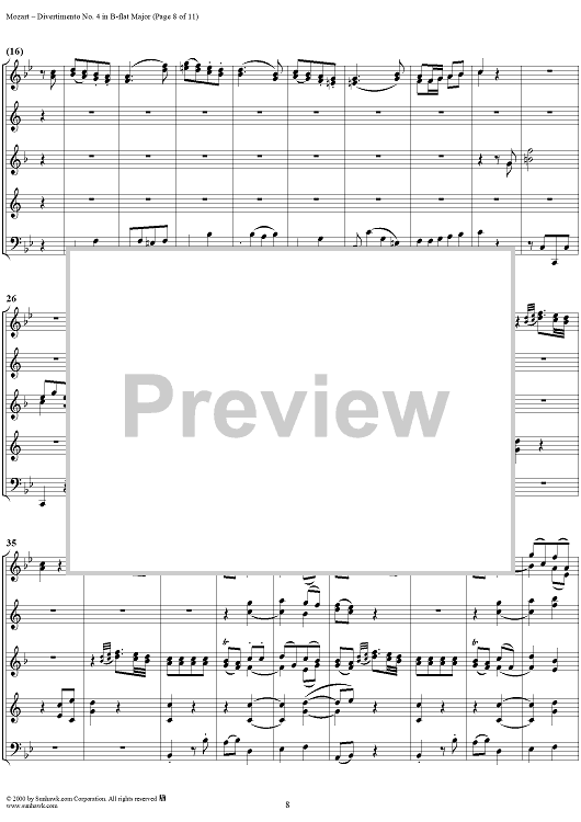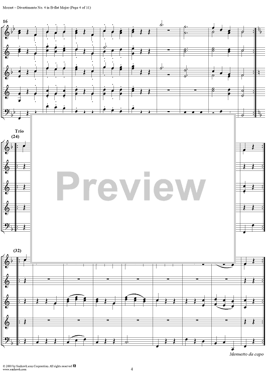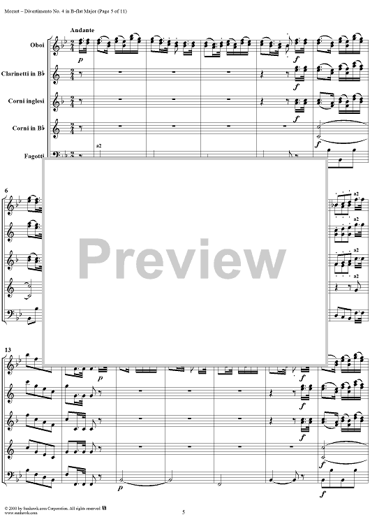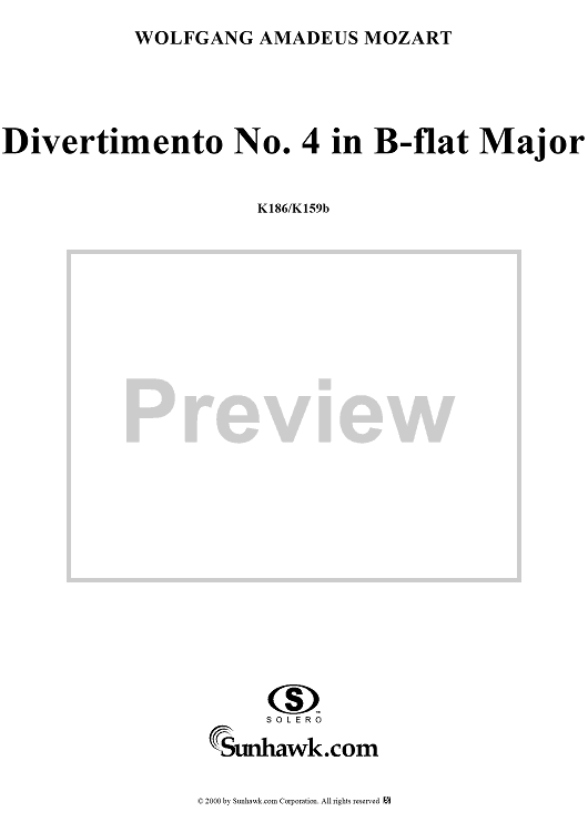 Digital Sheet Music for Divertimento No. 4 in B-flat major, K186 - Full Score by Wolfgang Amadeus Mozart scored for Woodwind Ensemble; id:235187