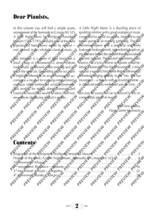 This latest addition to the successful ‘Get to Know Classical Masterpieces’ series provides an introduction to Mozart’s much-loved Eine Kleine Nachtmusik. All four movements of the serenade have been arranged by Heumann making the piece accessible to both beginner pianists and music-lovers alike. The book includes a biography of key dates on the composer as well as a short history of the work. Full colour illustrations are provided after each movement which adds a certain charm to the publication. Also available in the series: The Carnival of the Animals Hansel and Gretal Peer Gynt The Nutcracker The Moldau Carmen Scheherazade The Four Seasons Pictures at an Exhibition The Magic Flute Water Music & Music for the Royal Fireworks Swan Lake Symphony No. 5