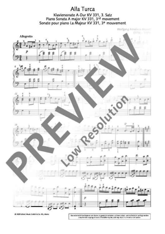 "Alla Turca in A major" Sheet Music by Wolfgang Amadeus Mozart