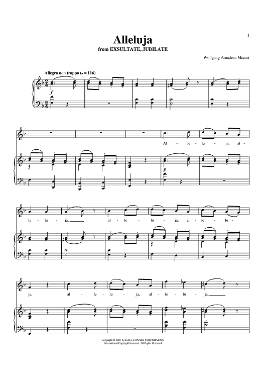"Alleluia" Sheet Music by Wolfgang Amadeus Mozart