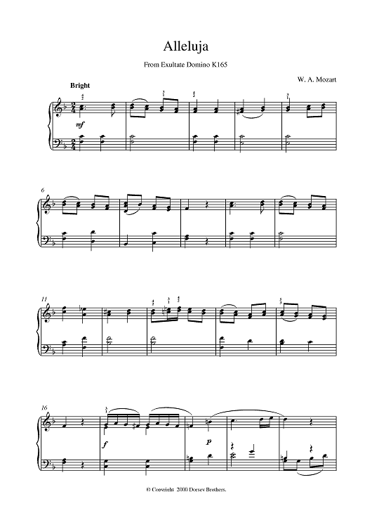 Digital Sheet Music for Alleluja From Exultate Domino by Wolfgang Amadeus Mozart scored for Piano; id:385904