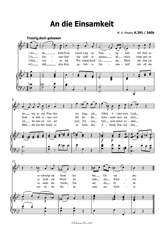 "An die einsamkeit" Sheet Music by Wolfgang Amadeus Mozart