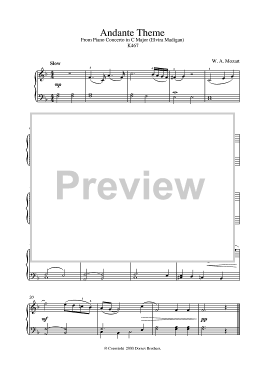 Digital Sheet Music for Andante Theme K467 by Wolfgang Amadeus Mozart scored for Piano; id:385907