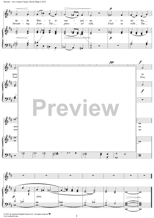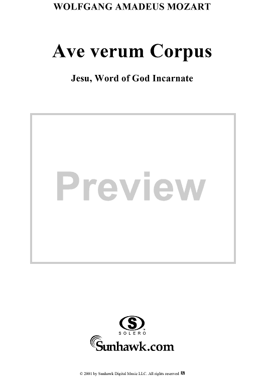 Digital Sheet Music for Ave verum Corpus "Jesu, Word of God's Incarnate," K618 by Wolfgang Amadeus Mozart scored for Voice/Piano; id:262283