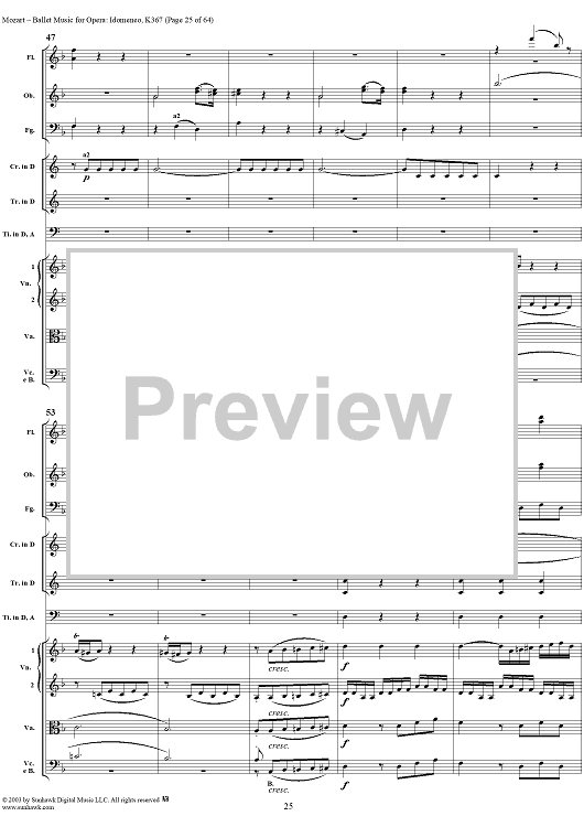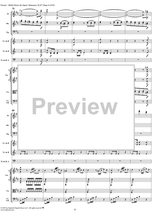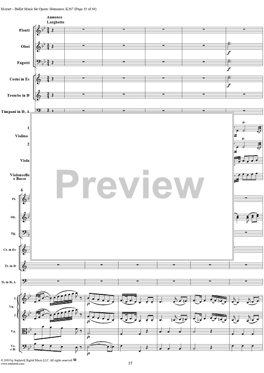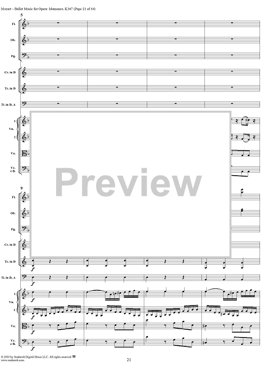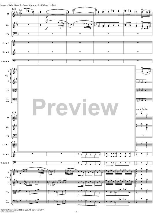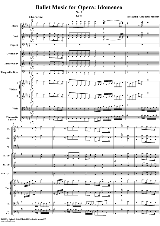 Digital Sheet Music for Ballet music for opera: Idomeneo, K367 by Wolfgang Amadeus Mozart scored for Orchestra; id:256252