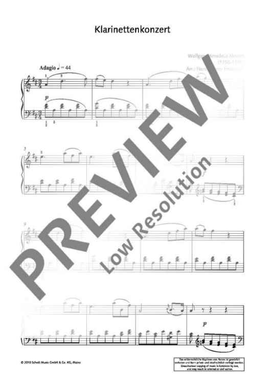 Digital Sheet Music for Concerto for Clarinet and Orchestra A major by Wolfgang Amadeus Mozart, Hans-Guenter Heumann scored for Piano; id:478224