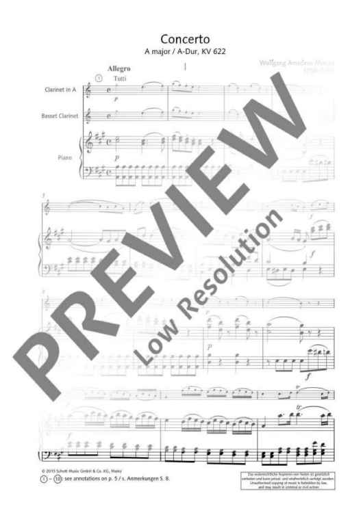 "Concerto in A major - Piano Score and Solo Part" Sheet Music by Wolfgang Amadeus Mozart