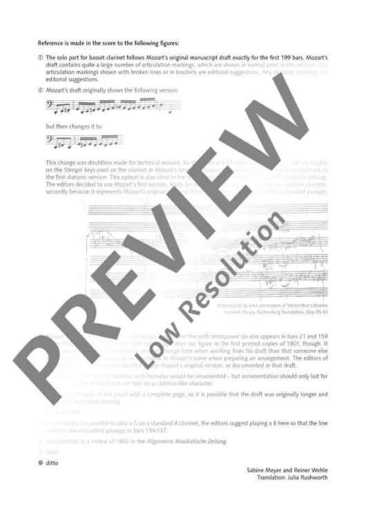 Mozart's Clarinet Concerto is one of the most popular works in the classical concert repertoire. This edition, edited by Sabine Meyer and Reiner Wehle, reconstructs the original version written by Mozart for the basset horn.