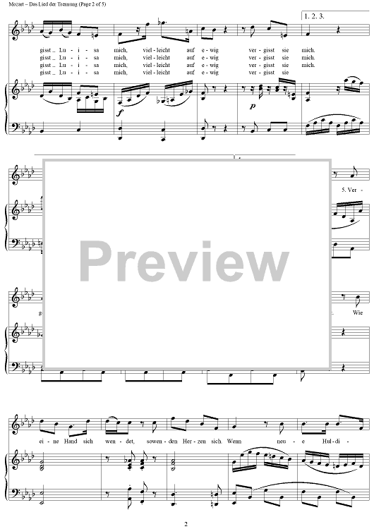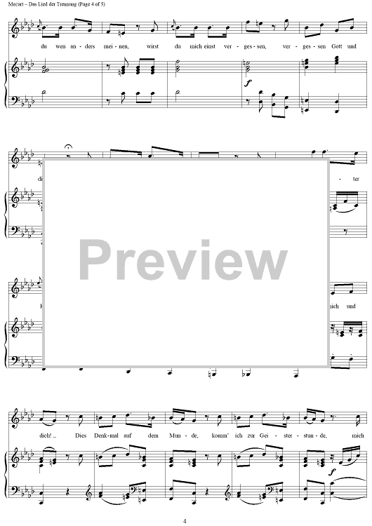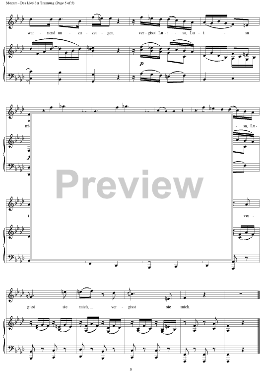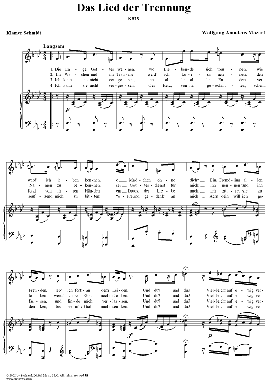 Digital Sheet Music for Das Lied der Trennung, K519 by Wolfgang Amadeus Mozart, Klamer Schmidt scored for Voice/Piano; id:291362