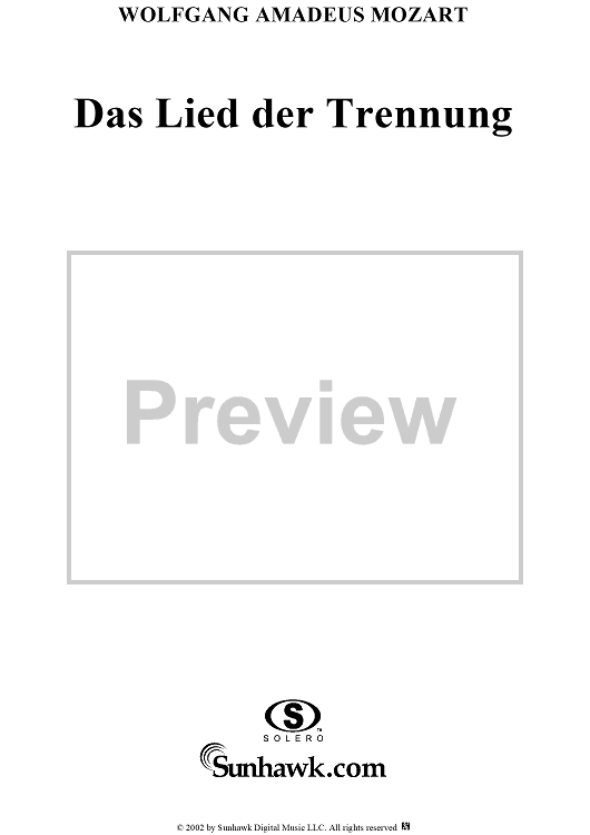 "Das Lied der Trennung, K519" Sheet Music by Wolfgang Amadeus Mozart