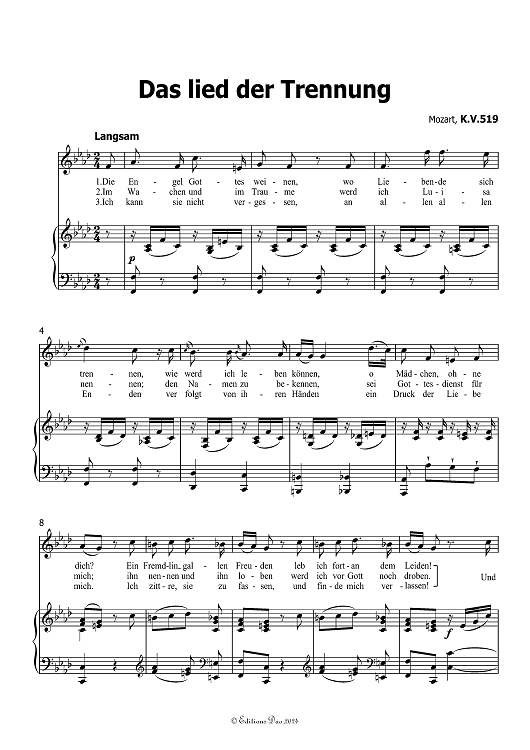 "Das lied der trennung" Sheet Music by Wolfgang Amadeus Mozart