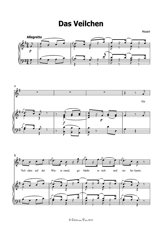 "Das Veilchen" Sheet Music by Wolfgang Amadeus Mozart