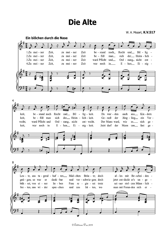 "Die alte" Sheet Music by Wolfgang Amadeus Mozart