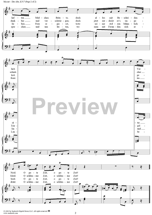 "Die Alte: "Zu meiner Zeit", K517" Sheet Music by Wolfgang Amadeus Mozart