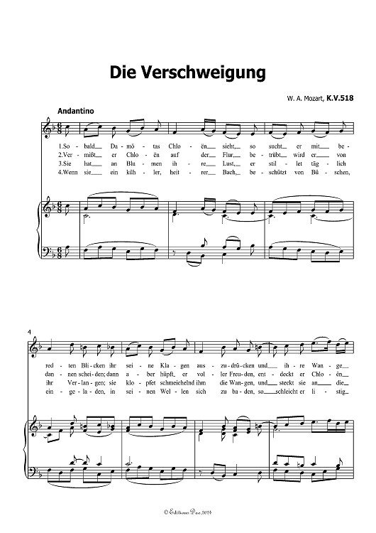 "Die verschweigung" K.V.518, in F Major, for Voice and Piano