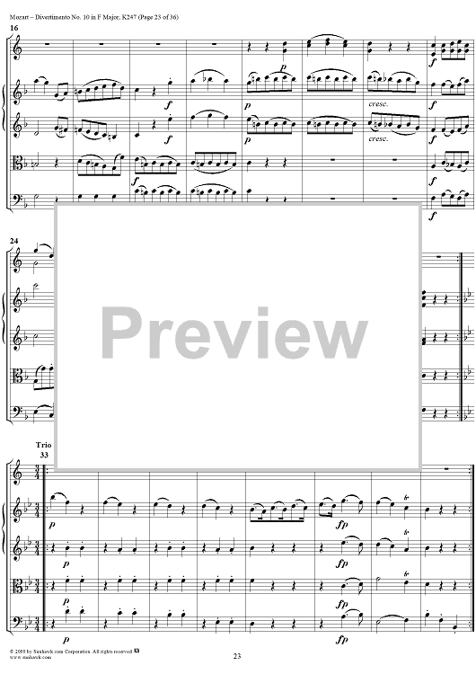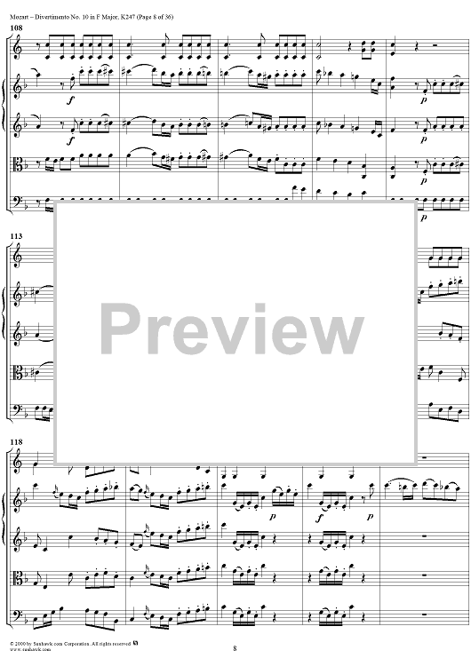 "Divertimento No 10 in F Major, K247 - Full Score" Sheet Music by Wolfgang Amadeus Mozart