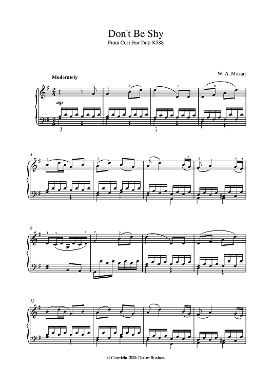 Digital Sheet Music for Don't Be Shy From Cosi Fan Tutti K588 by Wolfgang Amadeus Mozart scored for Piano; id:382586