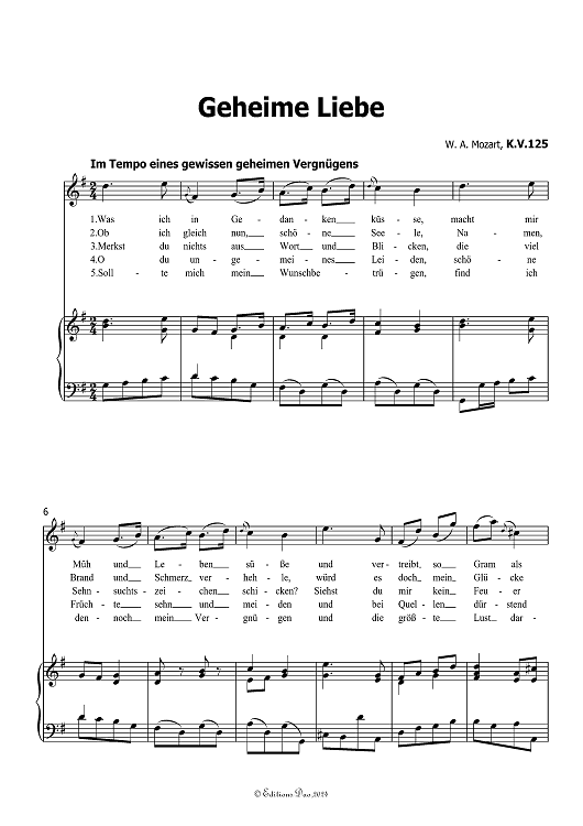 "Geheime Liebe" Sheet Music by Wolfgang Amadeus Mozart