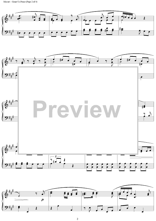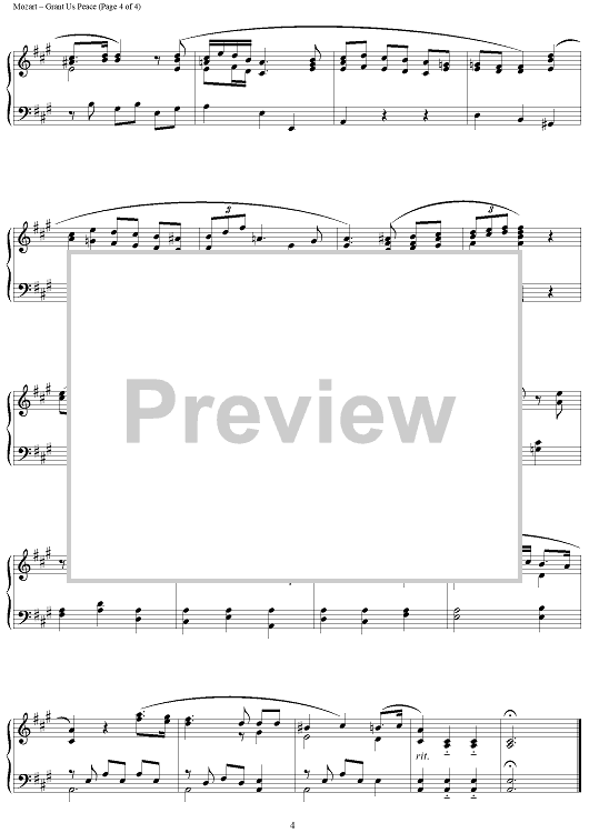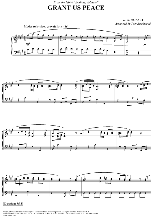 Digital Sheet Music for Grant Us Peace by Wolfgang Amadeus Mozart, Tom Birchwood scored for Piano Solo; id:457005