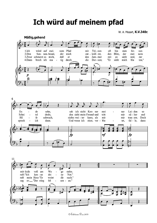 "Ich wurd auf meinem pfad" K.V.340c, in d minor, for Voice and Piano