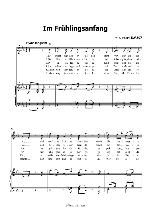"Im fruhlingsanfang" K.V.597, in E flat Major, for Voice and Piano
