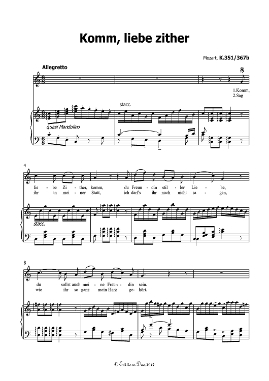 "Komm, liebe zither", K.351; K.367b in C Major, for Voice and Piano