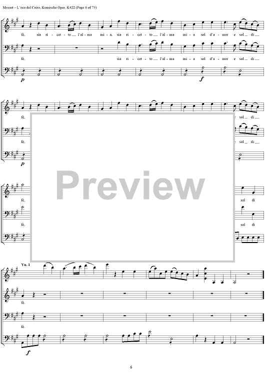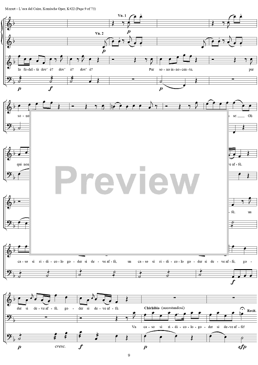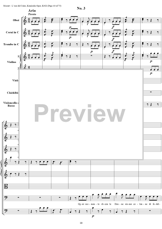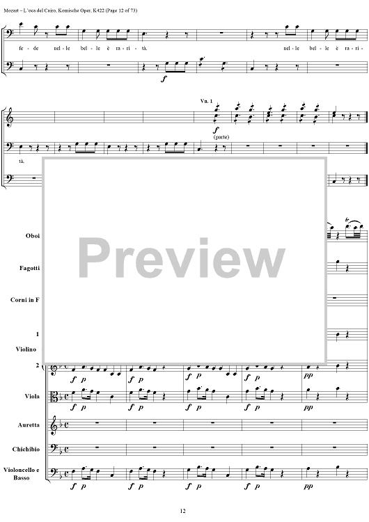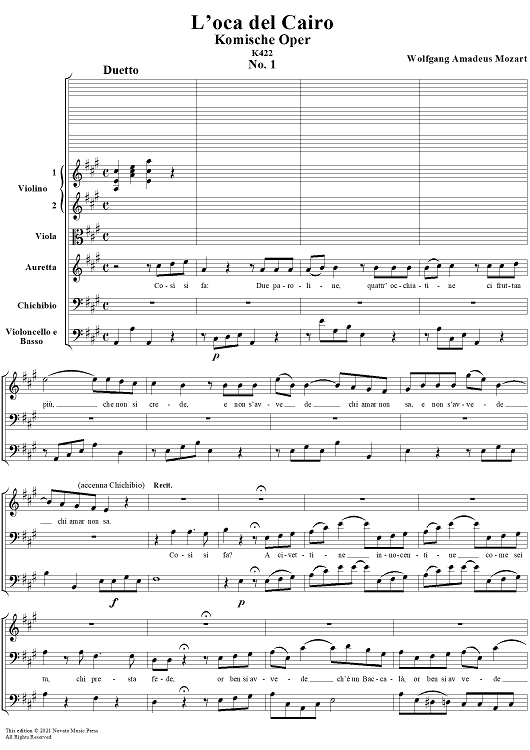 Digital Sheet Music for L'oca del Cairo, dramma giocoso, K422 by Wolfgang Amadeus Mozart scored for Orchestra; id:260361