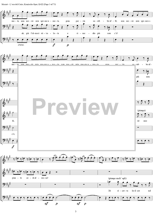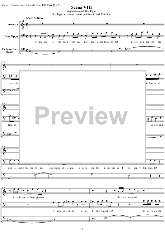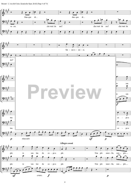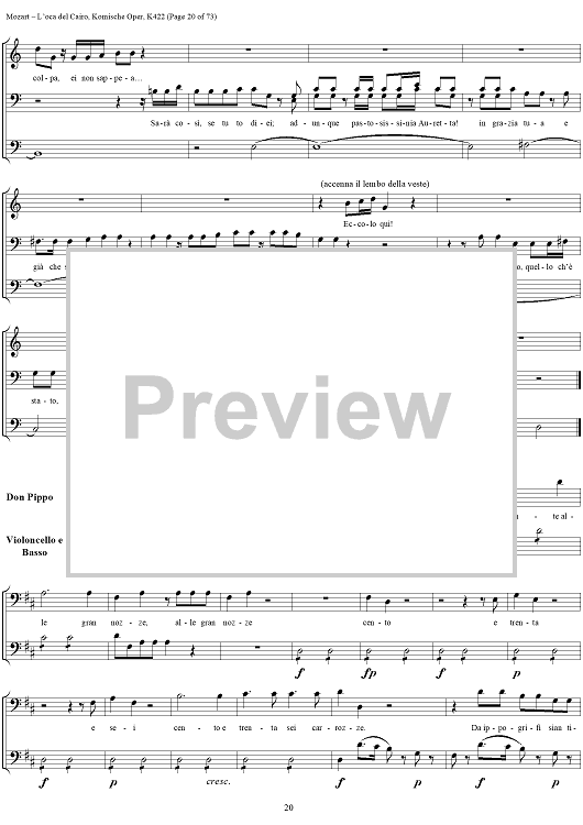 "L'oca del Cairo, dramma giocoso, K422" Sheet Music by Wolfgang Amadeus Mozart