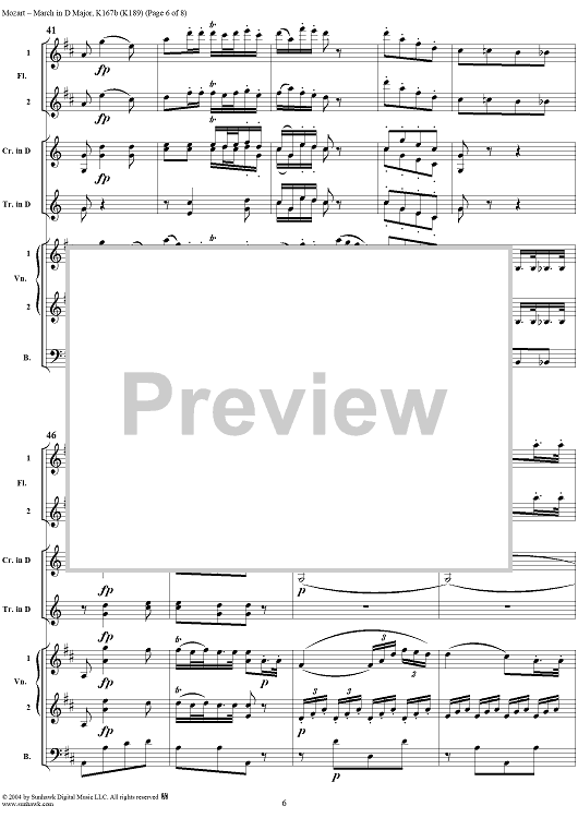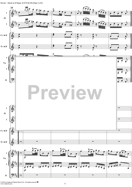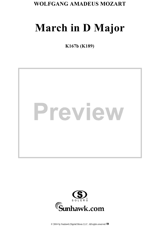 Digital Sheet Music for March in D Major, K167b (K189) - Full Score by Wolfgang Amadeus Mozart scored for Orchestra; id:292290