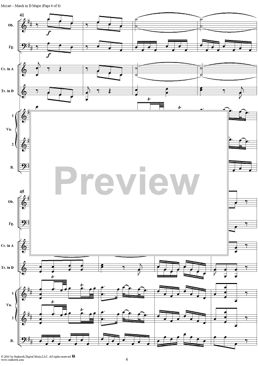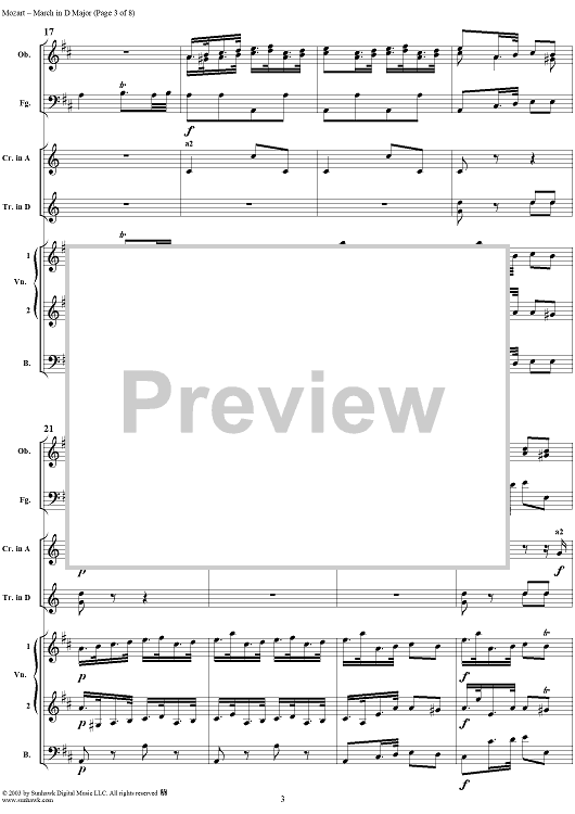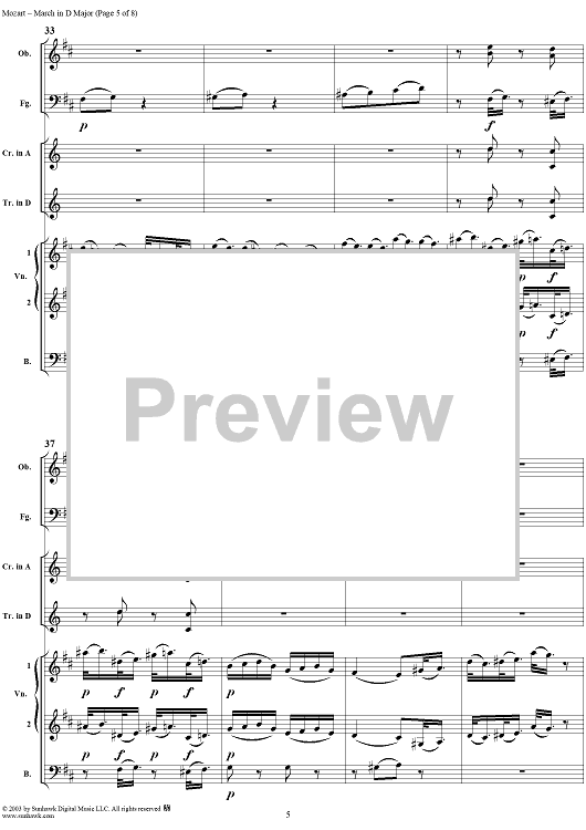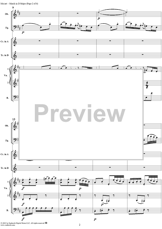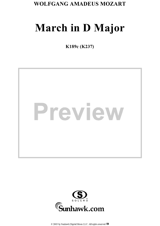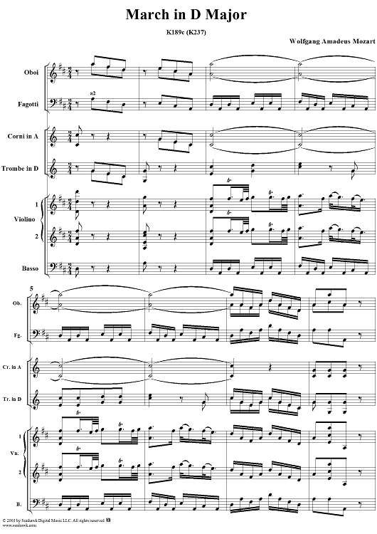Digital Sheet Music for March in D Major, K189c (K237) - Full Score by Wolfgang Amadeus Mozart scored for Orchestra; id:292293
