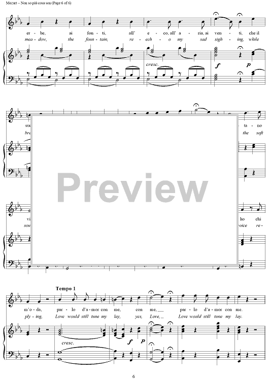 Digital Sheet Music for Non so più cosa son - From "Le Nozze di Figaro" by Wolfgang Amadeus Mozart scored for Voice/Piano; id:274237
