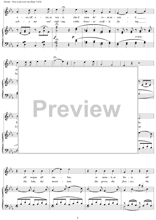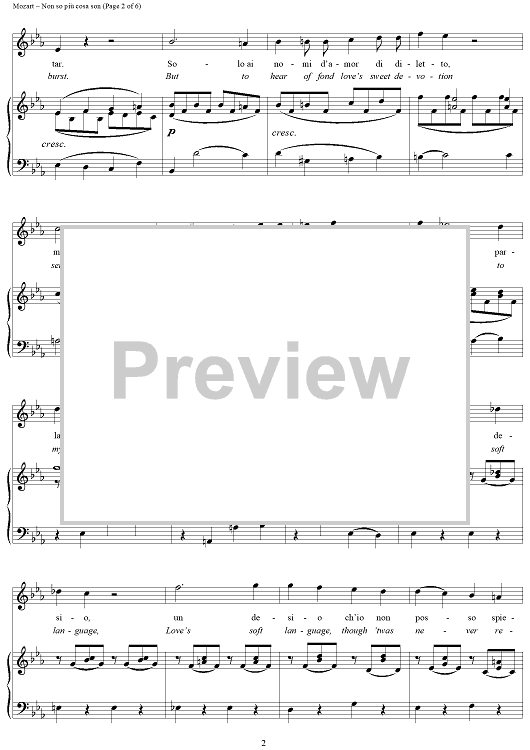 "Non so più cosa son - From "Le Nozze di Figaro"" Sheet Music by Wolfgang Amadeus Mozart