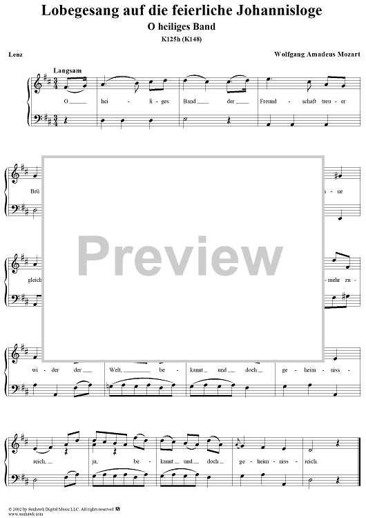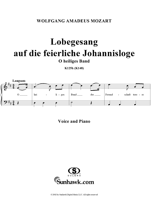 Digital Sheet Music for O heiliges Band, K125h (K148) by Wolfgang Amadeus Mozart scored for Voice/Piano; id:291186