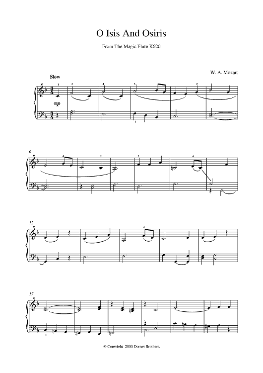 Digital Sheet Music for O Isis And Osiris From The Magic Flute K620 by Wolfgang Amadeus Mozart scored for Piano; id:382705